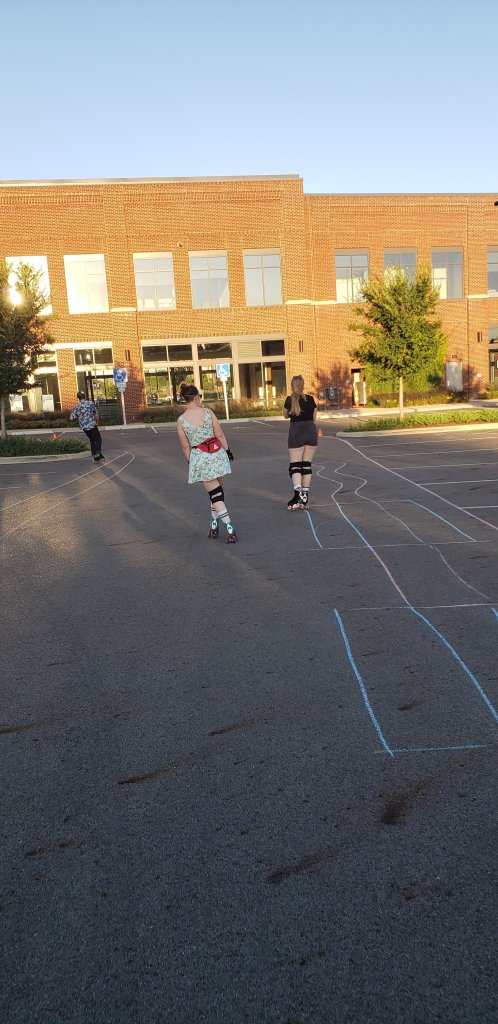 It was Traci’s first time out on her new skates and she took off like she had been skating forever. She fell once, and unfortunately it was on camera, but…still overall a great time.