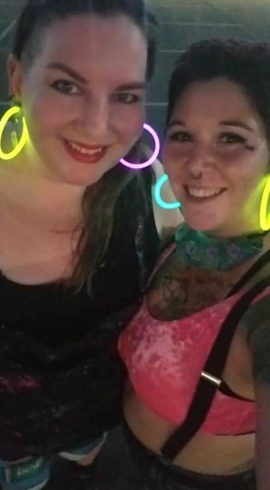 One of the members of my newly created skate group Skate Expectations (Jake) held a public skate party on Saturday in Grandview. My little sister, Traci, came to pick me up and we headed over to skate. We kind of inadvertently matched a little which was funny. Lots of pinks, purples and turquoise for us!