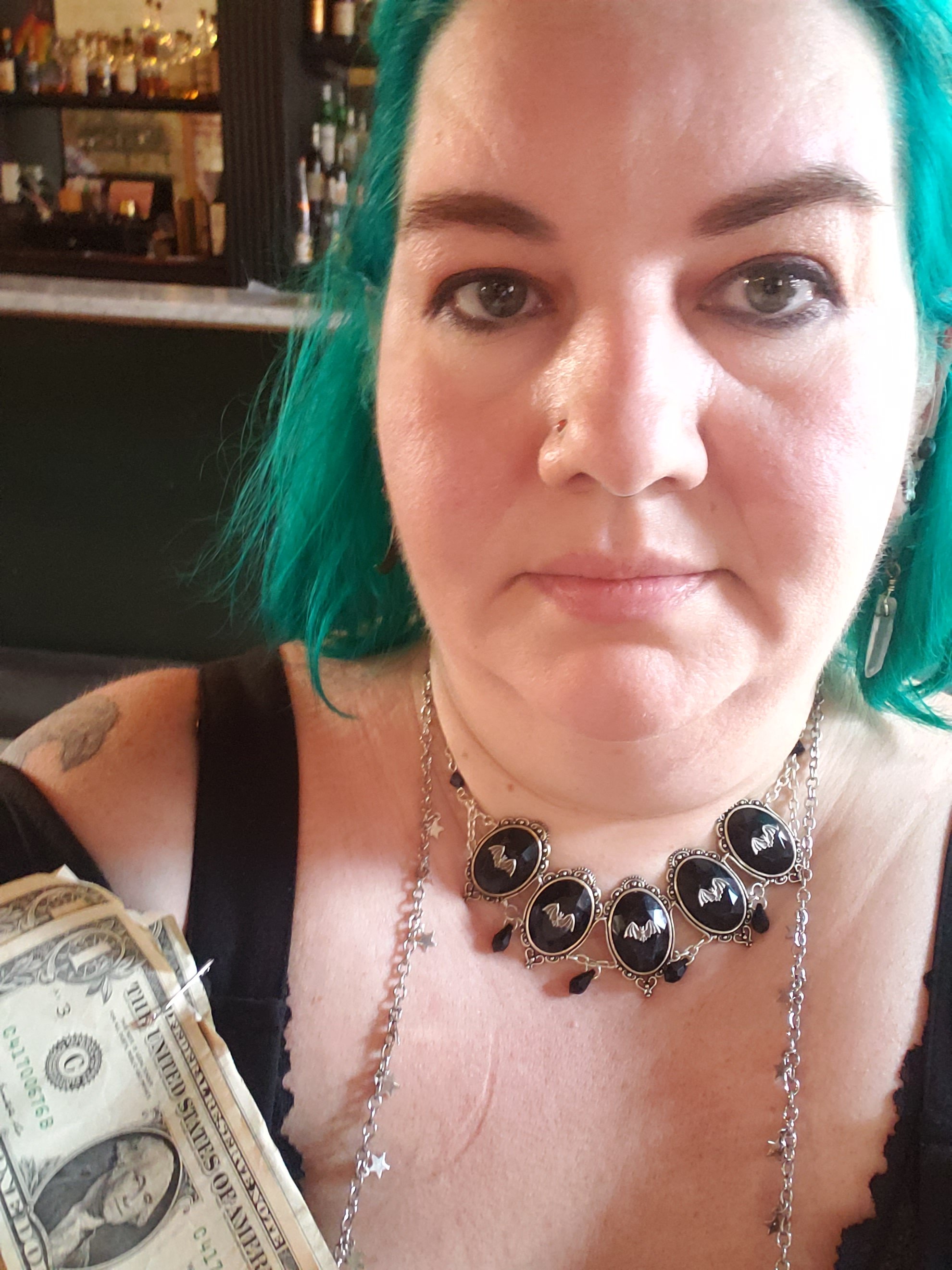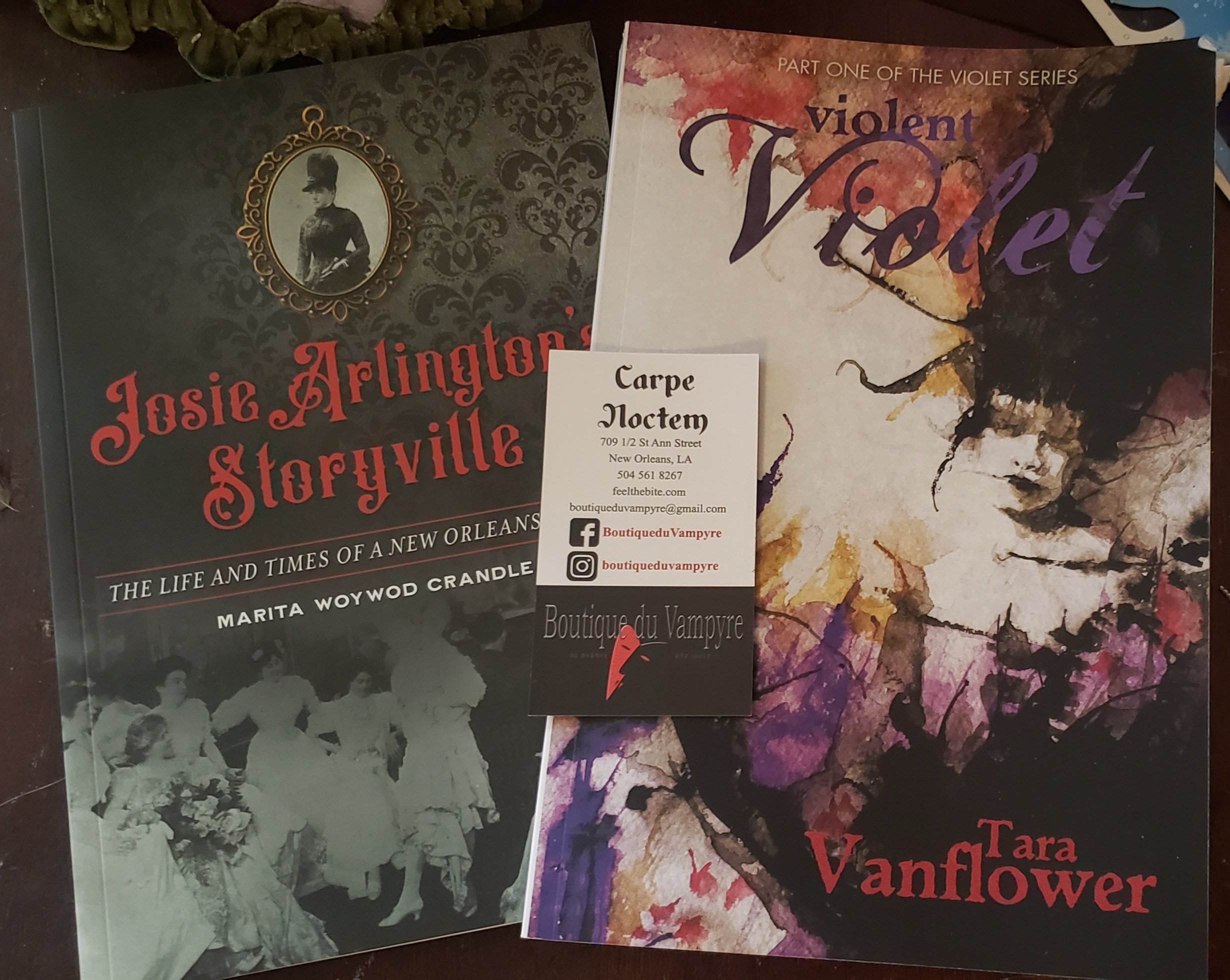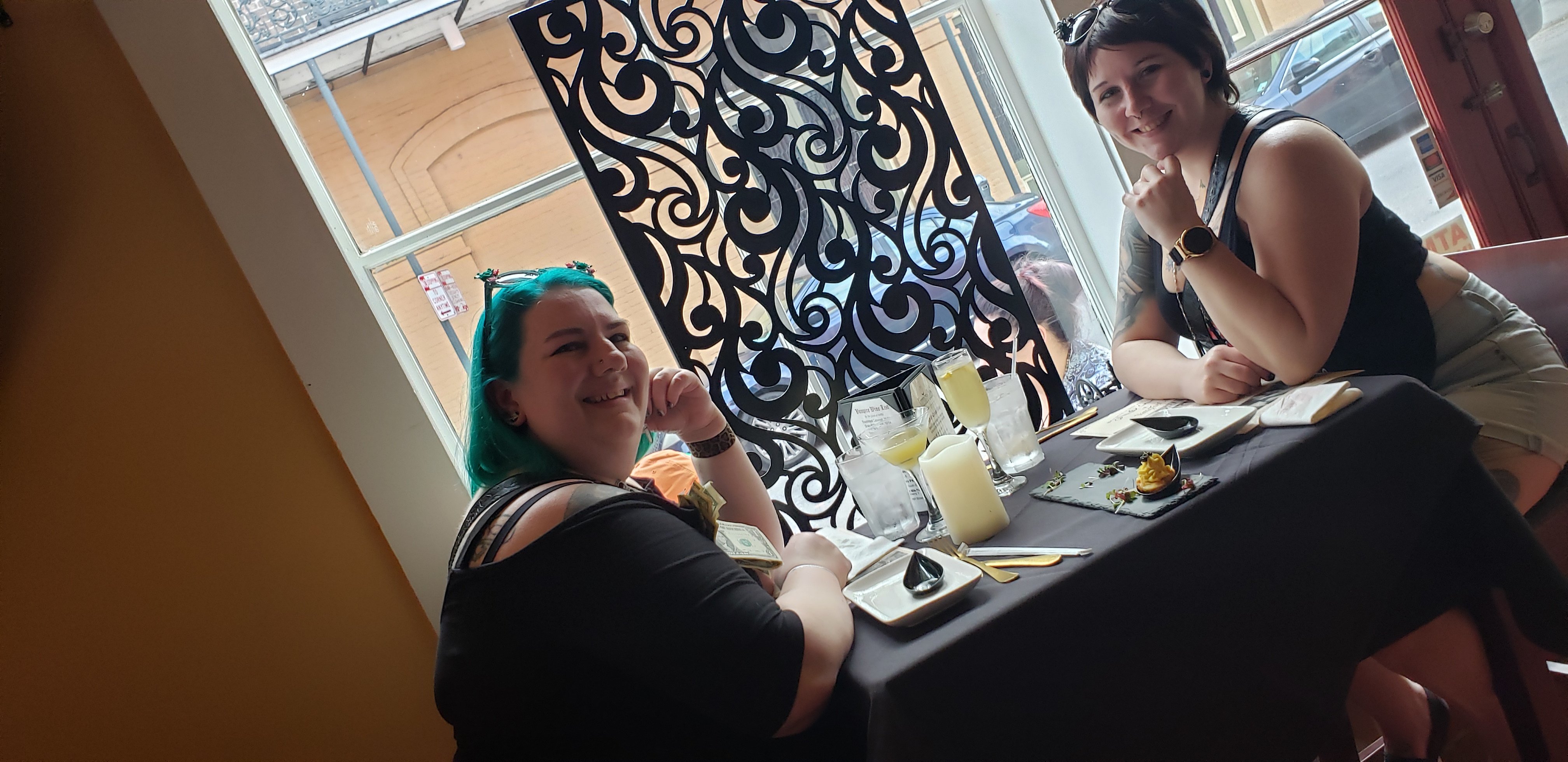 We walked around a bit more, bought books in a cute little bookshop, and then grabbed brunch (yep, we ate again) at an adorable restaurant called Evangeline. We then headed to one of the shops we had walked past earlier, Road Kill, where I bought a dress, a bag, sunglasses, two patches and two pins. They suggested to us that we check out two Vampire themed shops they thought we would like. I mentioned it was my birthday and one of the people in the shop pinned a couple of dollars on me, which was added to by a patron of the shop. We browsed a couple more shops, but didn’t make any purchases, then found another place to stop for drinks Cane & Table where I had what might be my personal ideal cocktail Sardi’s Delight which is “A passionfruit daiquiri with gin, a touch of pomegranate, and island spices.”