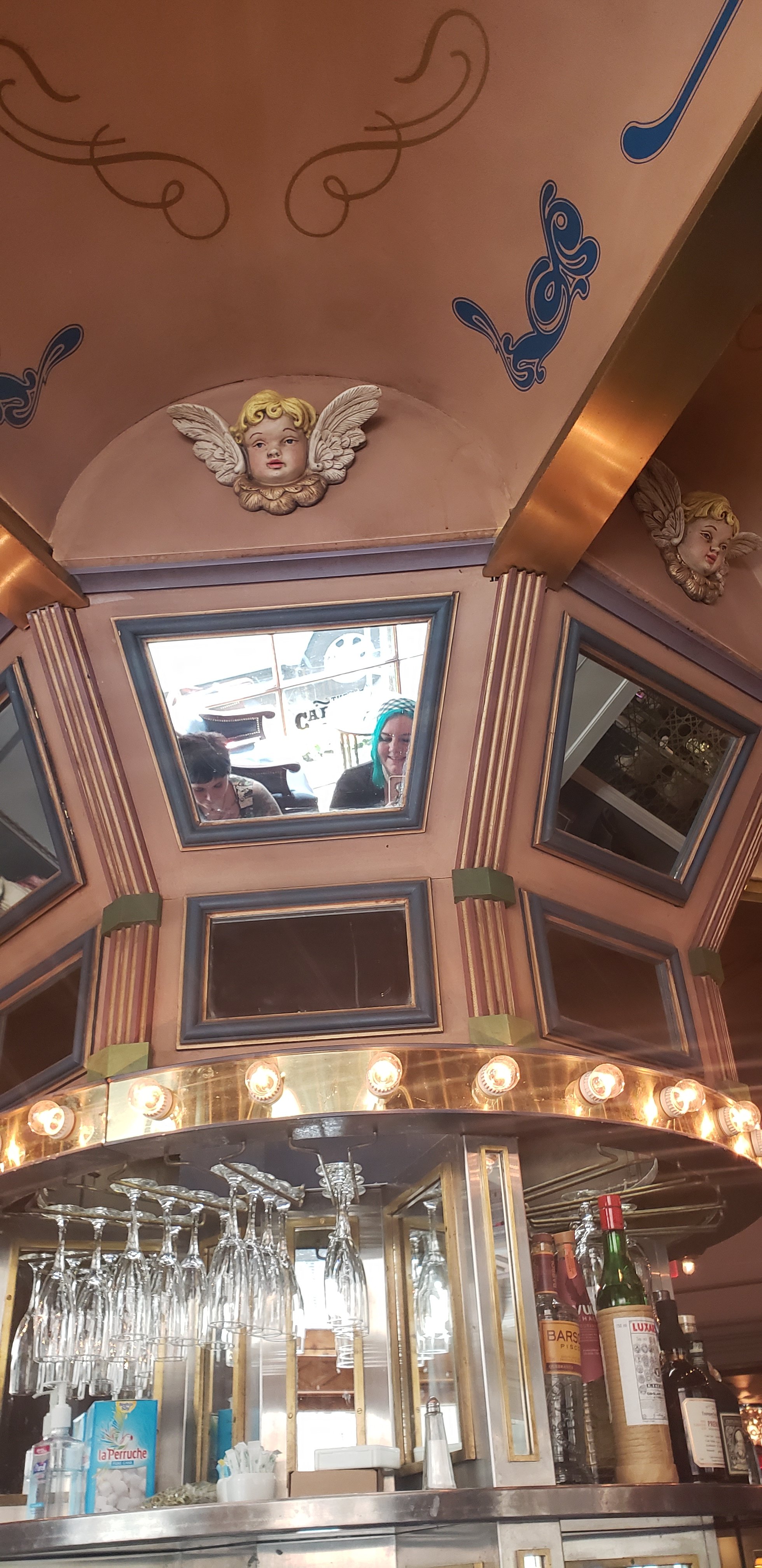 The next two days we walked around to take many photos, eat so much food, have some amazing drinks. On Tuesday we made it our mission to get a drink at the famous Carousel Bar in the Hotel Monteleon. We befriended a super nice woman from Houston and her adorable and lightly crotchety husband in line, and she decided to adopt us so we could all get on the Carousel at the same time. And It worked!! I ordered a drink that had Absinthe in it, but it is not listed on the menu for the bar and I cannot remember what it was called. It was delicious. The bartender there reminded me a bit of Penn from Penn and Teller, so there is that.
