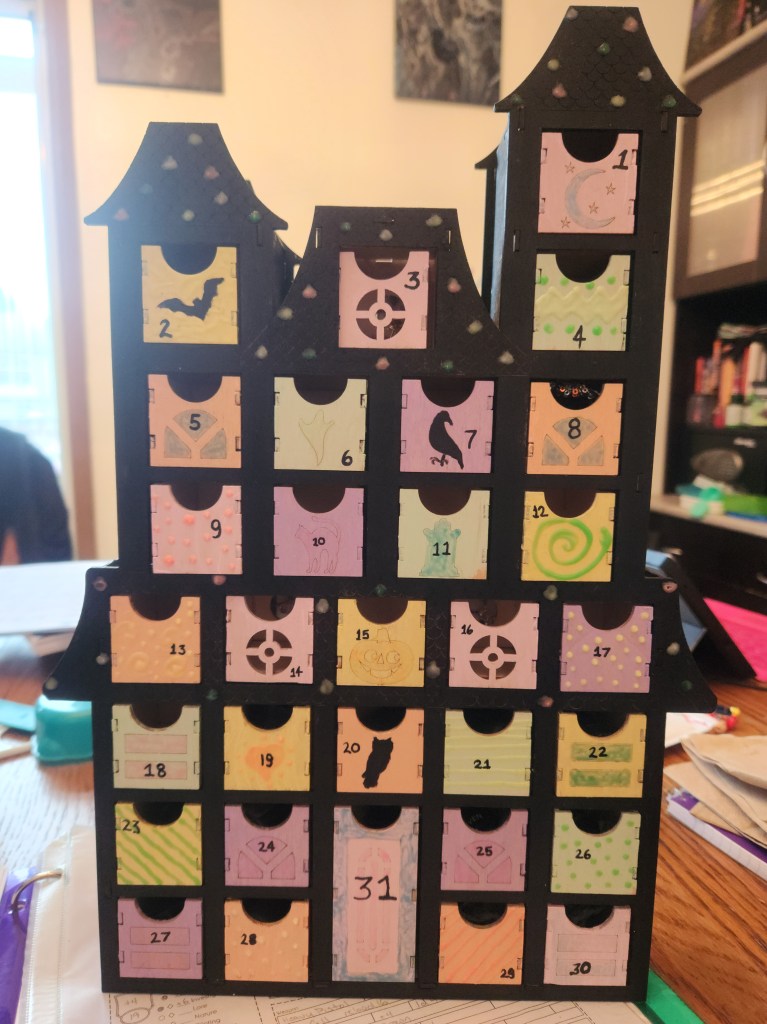 I have my Halloween Advent Calendar which I have asked my nibling, Asher, to fill the first eight days of my calendar for me and the last 13 of the month are filled with the holiday countdown from Sucreabeille. I also bought the Kawaii Sicker Countdown by Pipsticks.