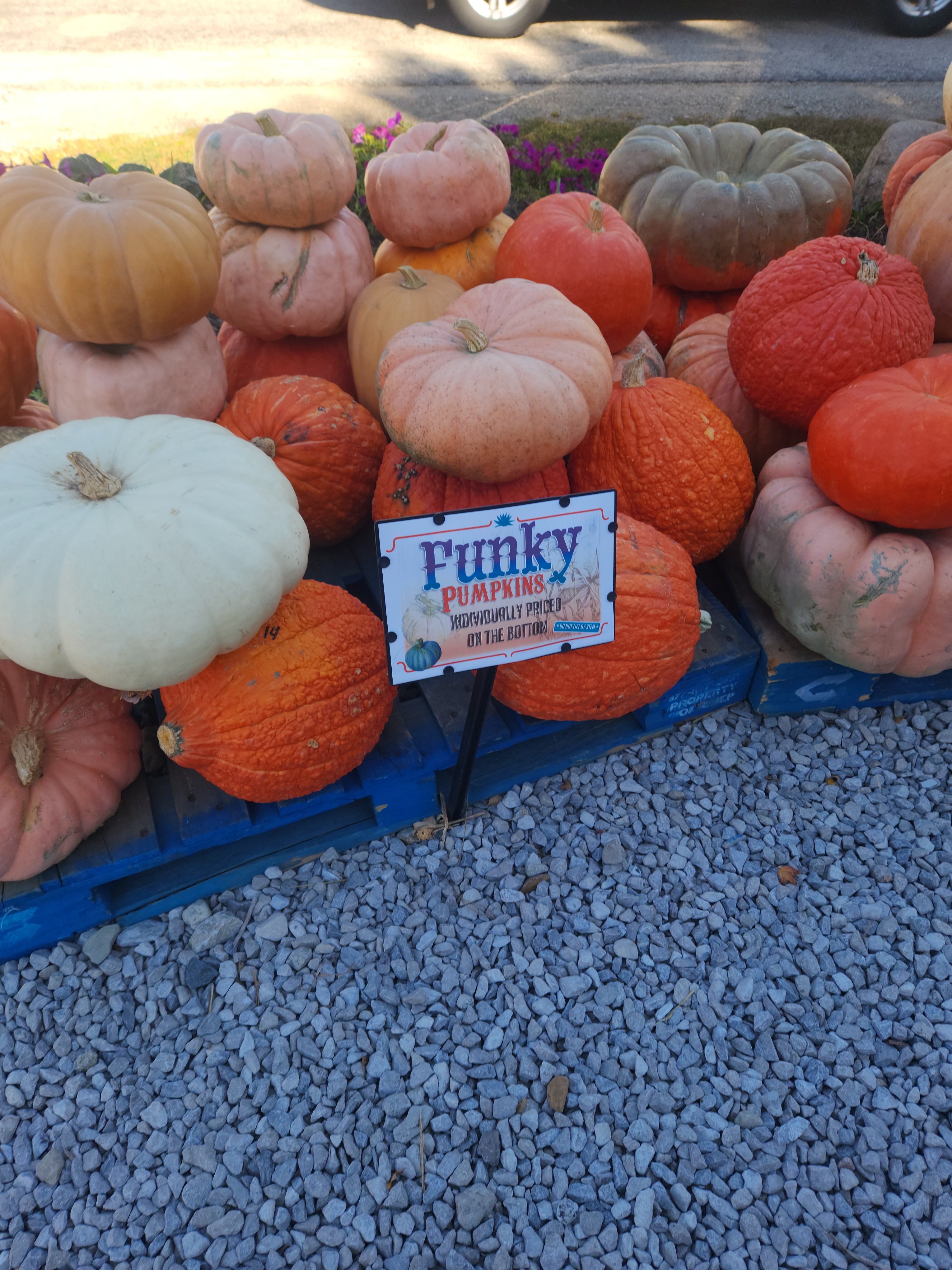They had some of the most beautiful displays of pumpkins and gourds. I was excited to find that they were reasonably priced as well. I grabbed a large white cindrella pumpkin and another almost pink smaller one. I also picked up some cute little ceramic mushrooms and a bumper sticker for on my van.